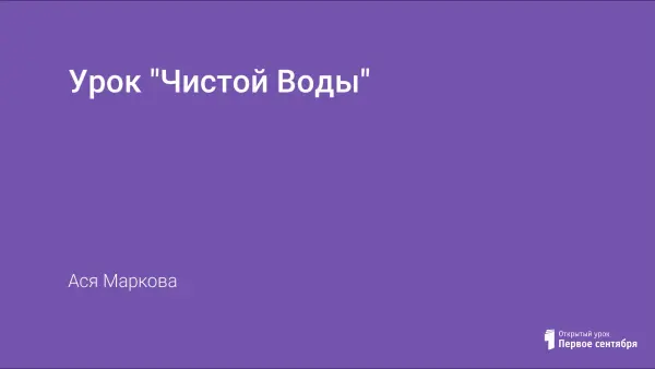 Задачи урока: сформировать у учащихся бережное отношение к воде как к жизненно важному ресурсу для здоровья и драгоценному дару природы России; побудить школьников к самостоятельному размышлению о важности воды для жизни планеты в настоящем, а, главное, в будущем; донесение информации о водных ресурсах мира, о влиянии воды на здоровье и жизнедеятельность человека.