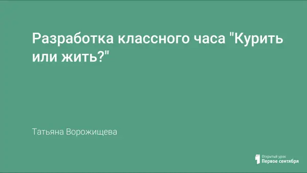 Цель классного часа - показать вред курения для молодого организма. История приобщения людей к курению. Статистические данные о вреде курения. Проведение опыта, наглядно показывающего, что происходит с легкими в процессе курения. Пример из художественной литературы (Марк Твен "Приключение Тома Сойера"). Почему подростки начинают курить (беседа). Парный тренинг "Убеди друга". Аргументы против курения.