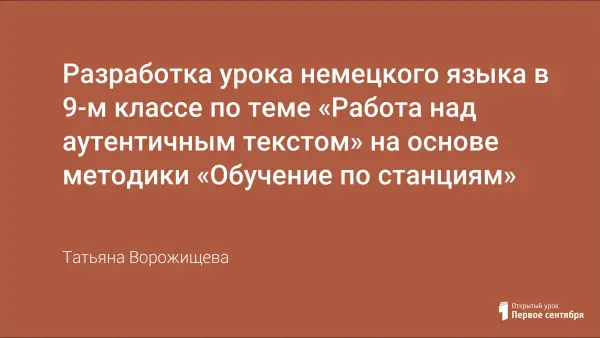 «Обучение по станциям» – одна из современных методик, которая применяется при итоговом контроле. Разработка методики принадлежит немецким методистам (К.Рауер, М.Шмидт и др.) Такое обучение делает возможным подойти к процессу обучения более дифференцированно. Учитель выполняет роль организатора и координатора. В основе урока лежит работа с аутентичным текстом. Урок можно разделить на три этапа: предтекстовое задание, текстовое задание и послетекстовое задание.