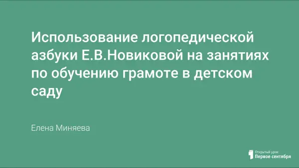 Использование логопедической азбуки Е.В.Новиковой на занятиях по обучению грамоте в детском саду