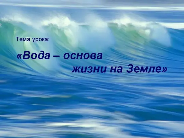Интегрированный урок по химии и биологии знакомит учащихся с водой: с распространением на Земле, со строением молекулы, физическими и химическими свойствами, круговоротом в природе, значением для живых организмов. На уроке затрагиваются экологические проблемы, обсуждаются возможные способы сохранения чистой воды на Земле.