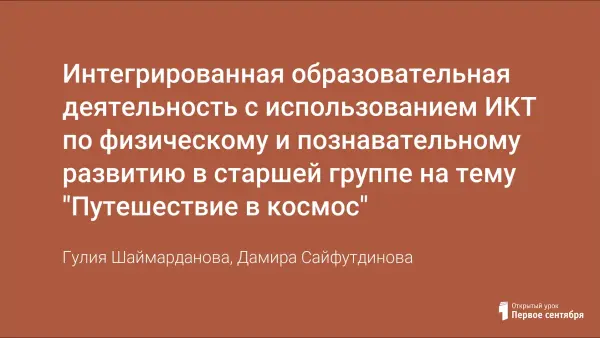 Интегрированная образовательная деятельность с использованием ИКТ по физическому и познавательному развитию в старшей группе расширяет представление детей о космическом пространстве и его значении для людей, воспитывает уважительное отношение к памяти космонавтов-героев и умение как побеждать, так и проигрывать. Занятие способствует сплочению детского коллектива, создает ситуацию эмоционального благополучия в форме игровой деятельности.