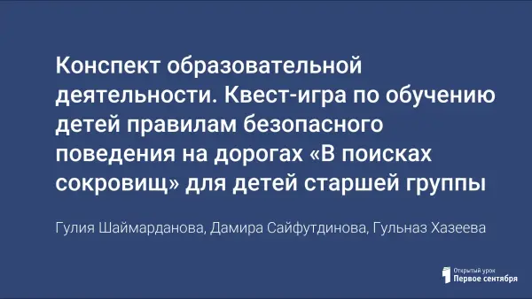 Правилам безопасного поведения на дорогах мы обязаны научить детей с детства. Знания этих правил предотвращает аварии и сохраняет жизни многих людей. Считая важным обучению дошкольников правилам безопасного поведения на дорогах с детства, мы реализовали конспект образовательной деятельности квест-игры по обучению детей правилам безопасного поведения на дорогах «В поисках сокровищ», так как данный подход к обучению позволит детям лучше усвоить материал, сформировать у них знания в области безопасности жизнедеятельности, расширит кругозор, воспитает культуру поведения на дорогах.