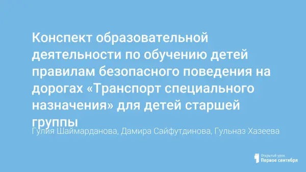 Правилам безопасного поведения на дорогах мы обязаны научить детей с детства. Знания этих правил предотвращает аварии и сохраняет жизни многих людей. Данный подход к обучению позволит детям лучше усвоить материал, сформировать у них знания в области безопасности жизнедеятельности, расширит кругозор, воспитает культуру поведения на дорогах. Цель занятия: познакомить детей с транспортом специального назначения.