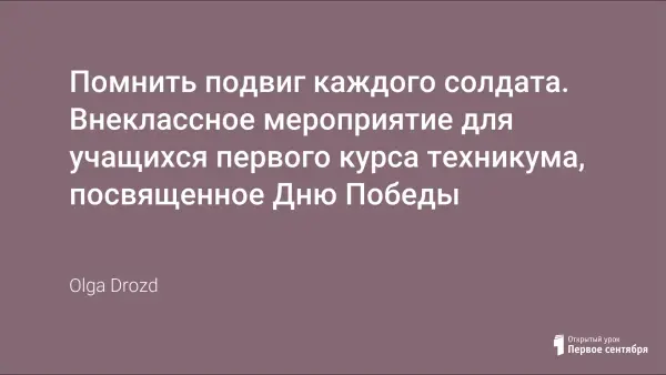 Цель мероприятия: расширить знания по истории Великой Отечественной войны посредством музейных предметов, архивных документов и краеведческой литературы; формировать чувство причастности к крупным историческим событиям через историю своего края, своей семьи. Внеклассное мероприятие является итоговым в цикле мероприятий посвященных Дню Победы, которые проходят в техникуме в апреле, мае для учащихся первого курса. Мероприятия проводятся совместно преподавателями истории, литературы и кураторами групп.