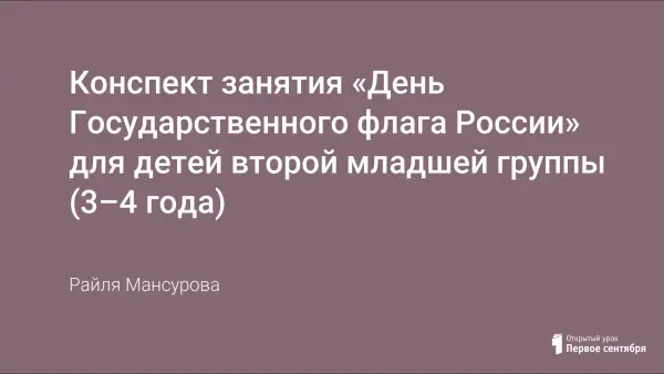 Цель занятия: создание условий для формирования у детей патриотических чувств, гордости и любви к государственному флагу России.