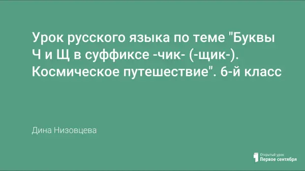 Открытый урок русского языка в 6-м классе с использованием информационных технологий. На уроке закрепляется правописание букв Ч и Щ в суффиксе -чик- (-щик-); применяется способ действия для правильного написания суффиксов -чик-, (-щик-). Обращается внимание учащихся еще на одну функцию суффикса -чик- – уменьшительное значение.