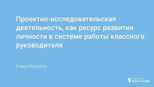 Проекты так или иначе реализуются классным руководителем, в каждом случае, когда за основу подготовки к мероприятию берется конкретное положение, это обусловлено тем, что проект направлен на получение запланированного результата – продукта. Результат же должен быть соотнесен со всеми характеристиками, сформулированными в его замысле. Но при этом редко удается 100% охватить классный коллектив. Поэтому возникает необходимость подключения в систему работы учебно-исследовательской деятельности, в процессе которой организуется поиск в какой-то области, формулируются отдельные характеристики результатов работы, которая включает формулировку проблемы исследования, выдвижение гипотезы и эксперимент. Для детей не проявляющих успехов в учебной деятельности всегда важно с чего-то начать и в то же время для классного руководителя важно найти общий язык с каждым, такое взаимодействие полезно и приносит свои положительные результаты.