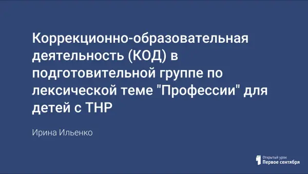 Конспект коррекционно-образовательной деятельности (КОД) в подготовительной группе по лексической теме «Профессии» для детей с тяжелыми нарушениями речи. Цель: совершенствовать умение детей пересказывать близко к тексту. Виды деятельности: познавательная, игровая, двигательная, исследовательская, коммуникативная.