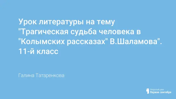Основной целью урока является знакомство с жизнью и творчеством В.Шаламова, историей нашей страны. В процессе работы формируются лингвистические и коммуникативные навыки учащихся, идет обучение анализу эпического произведения, умению «видеть» и «слышать» писателя.