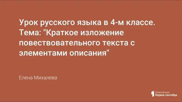 Разработана серия уроков по всем классам по программе «Школа 2100». При разработке и планировании уроков стараюсь подобрать интересный материал, дифференцированные виды работ разного уровня сложности. Хочу предложить один из уроков по развитию речи в 4-м классе, формирующий умения кратко передавать содержание рассказа, не пропуская существенного и сохраняя авторский стиль; умения составлять план, выделяя главное; воспитывающий любовь к животным.