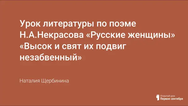 Урок литературы по поэме Н.А.Некрасова «Русские женщины» призван научить думать, спорить, мыслить. Урок-размышление призывает поразмышлять над вопросами: Что такое подвиг? Какими качествами должен обладать человек, способный на подвиг?