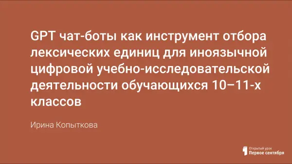 К сожалению, на сегодняшний день в современных УМК по английскому языку учебно-исследовательская деятельность представлена недостаточно обширно, что заставляет учителя самостоятельно отбирать содержание отбирать содержание и соответствующие способы и формы обучения учебному исследованию на иностранном языке для реализации требований Федеральной рабочей программы. Одним из ключевых моментов при отборе содержания является отбор лексических единиц для освоения обучающимися в процессе иноязычной учебно-исследовательской деятельности, что требует значительных временных и интеллектуальных затрат со стороны учителя. В последние десятилетия искусственный интеллект и нейросети значительно изменили способы обучения и образования и стали полезным инструментом в деятельности учителя. В данной статье рассматривается, как внедрение технологий искусственного интеллекта может помочь учителю отобрать лексические единицы для учебно-исследовательской деятельности на иностранном (английском) языке с использованием цифровых инструментов (иноязычную цифровую учебно-исследовательскую деятельность) в старших классах. Также, в данной статье проводится сравнение доступных нейросетей с целью выявления наиболее эффективной при отборе лексических единиц для иноязычной цифровой учебно-исследовательской деятельности в 10–11-х классах.
