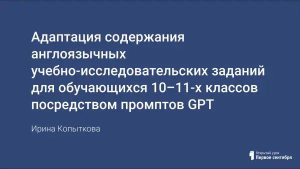В современном мире, характеризующемся глобализацией и возрастающей ролью международного сотрудничества, владение иностранными языками, в частности английским, становится неотъемлемым компонентом успешной профессиональной и личной реализации. В контексте российского образования это выдвигает на первый план задачу подготовки выпускников школ, способных эффективно использовать английский язык в различных ситуациях, включая учебно-исследовательскую деятельность. Однако, аутентичные англоязычные учебно-исследовательские задания зачастую представляют значительную сложность для учащихся 10–11-х классов, чей уровень владения языком может варьироваться, но зачастую не соответствует требованиям, предъявляемым к носителям языка. В связи с этим, адаптация содержания этих заданий становится необходимой мерой для обеспечения доступности, понимания и эффективного выполнения заданий учащимися.