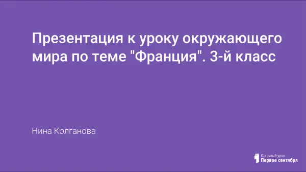 К уроку окружающего мира в 3-м классе представлена презентация по теме "Франция".