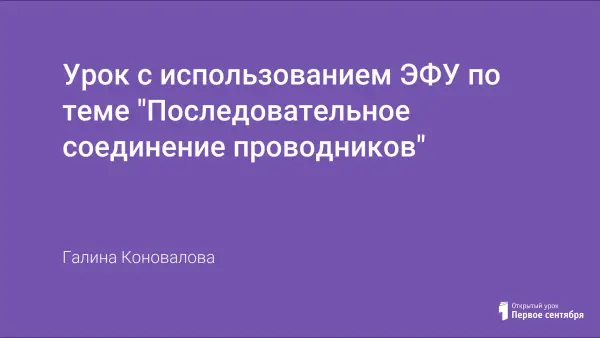 Задачи урока: на основе повторения и обобщения ранее изученного материала и в ходе знакомства с новым «Последовательное соединение проводников» углубить знания по теме «Постоянный ток»; способствовать становлению умения оценивать свою деятельность в ходе решения экспериментальных заданий по теме «Последовательное соединение проводников».