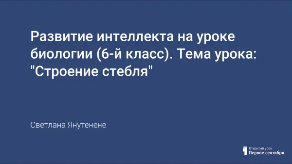 Более эффективное и качественное преподавание биологии может быть при использовании особой технологии "Интеллект". Развивая, такие важные качества учащихся, как память, мышление, чтение, говорение мы можем добиться более высоких результатов в процессе овладения биологическими знаниями. Вашему вниманию предложен урок "Строение стебля" для 6-го класса с применением развивающих упражнений.