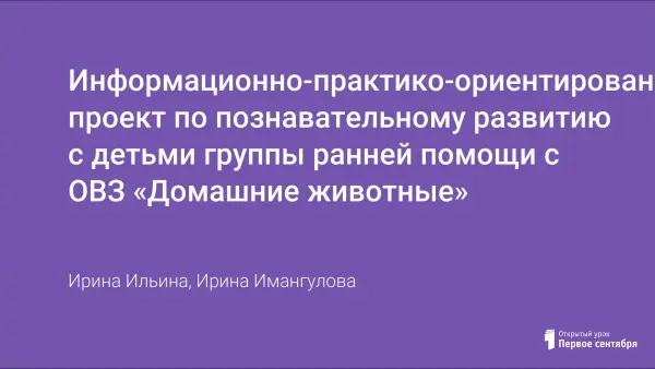 Информационно-практико-ориентированный проект по познавательному развитию с детьми группы ранней помощи с ОВЗ «Домашние животные»
