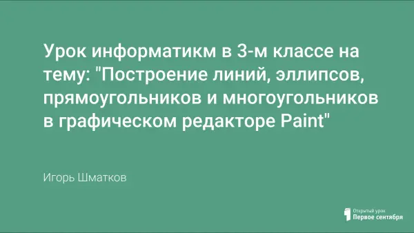 Урок информатики в 3-м классе преследует цель обобщения и систематизации ранее полученных теоретических знаний и продолжения формирования практических умений и навыков во время работы в графическом редакторе Paint. Занятие построено в игровой форме, что позволяет активизировать мыслительную деятельность учащихся, развивает интерес к предмету, способствует более прочному усвоению материала.