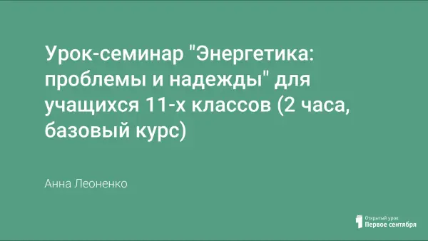 Урок-семинар по физике для учащихся 11-го класса по теме "Энергетика: проблемы и надежды" посвящён энергии, той самой энергии, без которой не было бы современного общества, привычных удобств, развлечений, современной цивилизации. В ходе активного изучения и обсуждения темы урока, учащиеся узнают об основах производства, проблемах строительства и эксплуатации электростанций различных видов, а также проявлении обостряющихся экологических проблемах глобального масштаба, связанных с её производством.