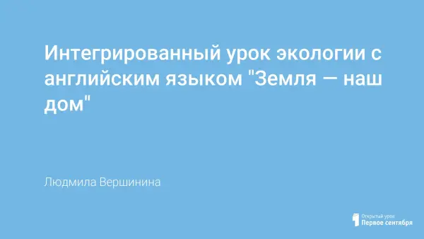 Интегрированный урок экологии с английским языком проводится на базе 7-го класса в форме конференции. Занятие рассчитано на 2 часа. В ходе данного урока учащиеся в игровой форме знакомятся с основными экологическими проблемами, стоящими сегодня перед человечеством, возможными путями их решения.