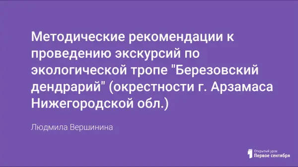 Методические рекомендации к проведению экскурсий по экологической тропе "Березовский дендрарий" (окрестности г. Арзамаса Нижегородской обл.)
