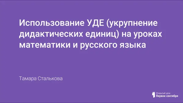 Всё это реализует система УДЕ (укрупнение дидактических единиц) - успешное и полное выполнение учебной программы с экономией времени при повышении глубины и прочности знаний.