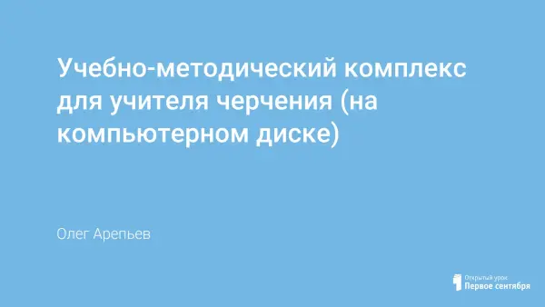 Компьютерный сборник "Черчение. Учебно-методический комплекс для учителя. V 1.0." предос-тавляет учителю богатейшие возможности представления информации на уроках черчения, пла-нировании и подготовки к занятиям. Диск может использоваться с любым учебно-методическим комплектом и практически при любом оснащении класса компьютерами. Слайды презентаций можно компоновать в своеобразные слайд-фильмы, а материалы презентаций и тестов можно применять при подготовке учащихся к итоговой аттестации по черчению.
