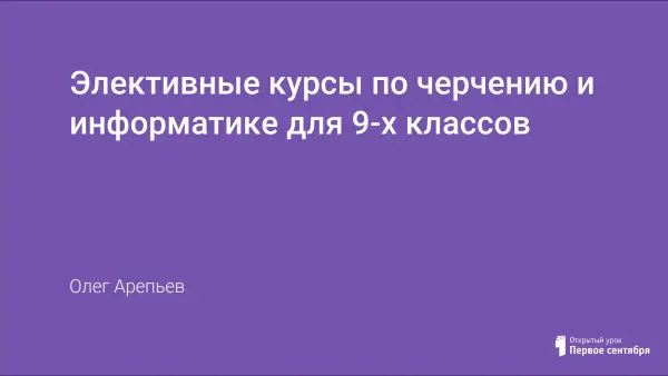 В статье представлены элективные курсы по черчению, информатике для 9-х классов, по следующим темам: "Графика. Компас 3D"; "Подготовка презентаций"; "Основы компьютерного делопроизводства"; "Основы предпринимательства". Курс выбирается в зависимости от структуры, содержания и организации образовательного процесса в конкретном образовательном учреждении.