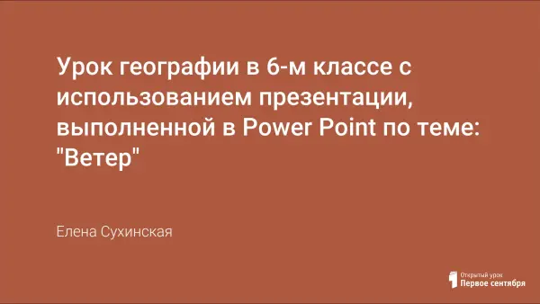 Предлагаю вниманию уважаемых коллег урок географии с использованием презентации, выполненной в Power Point. Мною подготовлены также презентации по следующим темам: 1) Ветер. 2) Вулканы. 3) Географические координаты. 4) Изображение рельефа на физических картах. 5) О чем расскажут облака. 6) Климат Северной Америки. 7) Экскурсия по Тотьме. 8) Черная металлургия России.