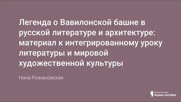 Легенда о Вавилонской башне в русской литературе и архитектуре: материал к интегрированному уроку литературы и мировой художественной культуры