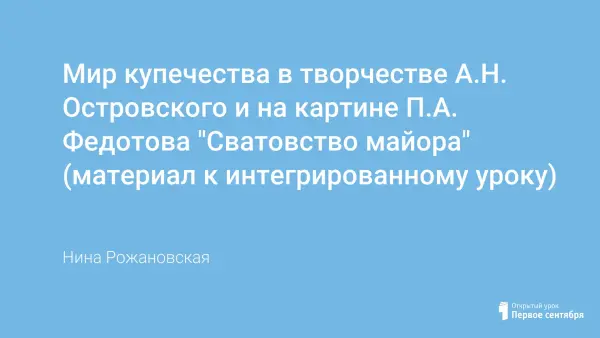 Мир купечества в творчестве А.Н. Островского и на картине П.А. Федотова "Сватовство майора" (материал к интегрированному уроку)