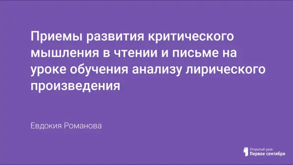 Анализируя лирическое произведение, дети учатся вникать в смысл слова, видеть его выразительные возможности, чувствовать его красоту и силу. Выполняя задания, определяют основные мысли автора, аргументируют их, составляют таблицы, сравнивают различные точки зрения. Таким образом совершенствуют свое умение понимать чужой текст и определять собственное мнение о прочитанном. Анализ текста развивает исcледовательские навыки, убеждает учеников в том, что ”чтение – прежде всего сотворчество”.