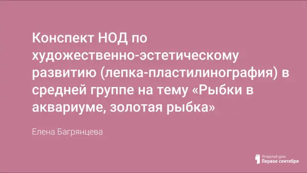 Цели занятия: закрепить знания детей о рыбах; формировать знания у детей о характерном строении рыб: форма тела, плавники, жабры и т.д.; закрепить имеющиеся представления об аквариуме, дать новую информацию о его обитателях; учить детей обобщать и классифицировать (морские рыбы, аквариумные рыбы, рыбы, живущие в пресноводных водоемах); развивать экологическое мышление и экологическую культуру.
