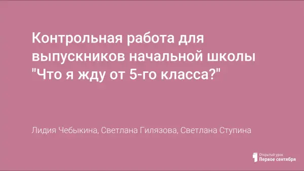 Как измерить достижения учащихся при переходе из начальной в основную школу? Можно провести традиционные контрольные работы, и мы получим информацию об уровне сформированности знаний, умений, навыков. Но только ли это должно нас интересовать? Контрольная работа "Что я жду от пятого класса" позволяет оценить уровень психологической готовности учащихся к переходу на новую ступень обучения, выявить уровень социальной зрелости выпускников начальной школы.