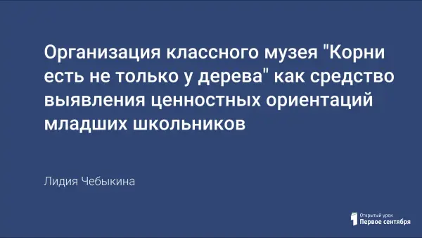 Организация классного музея и последующая контрольная работа "Корни есть не только у дерева" могут стать не только увлекательным воспитательным мероприятием, но и дадут богатый материал для размышления, который позволит учителю и родителям учащихся обнаружить, насколько жизненные ценности, которыми дорожат в каждой семье, стали ценностями младшего школьника.