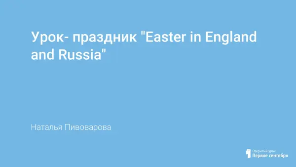 Представлена разработка урока-праздника для 5-го класса "Easter in England and Russia". В приложении предлагается презентация PowerPoint.