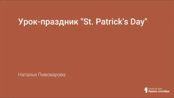 В статье предлагается конспект урока-праздника по теме "St. Patrick's Day" в 6-м классе.