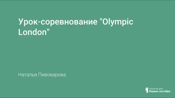 В статье представлен конспект урока-соревнования по английскому языку в 4-м классе по теме «Олимпийский Лондон-2012». Цель урока: повышать мотивацию учащихся в изучении английского языка, развивать кругозор и навыки толерантности, здорового образа жизни.