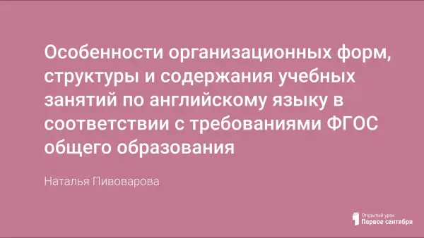 В статье представлены особенности организационных форм, структуры и содержания учебных занятий по английскому языку в соответствии с требованиями ФГОС общего образования на примере использования УМК «Английский в фокусе» Ваулиной Ю.Е., Дули Д., Подоляко О.Е., Эванс В.