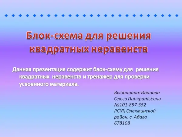 Данная презентация содержит блок-схему для решения квадратных неравенств и тренажер для проверки усвоенного материала.