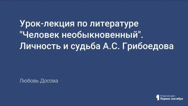 На уроке изучается процесс духовного становления личности Грибоедова, его нравственные и общественные идеалы с целью показать разностороннюю одаренность писателя, а также развить умение составлять план лекции, формулировать основные положения.