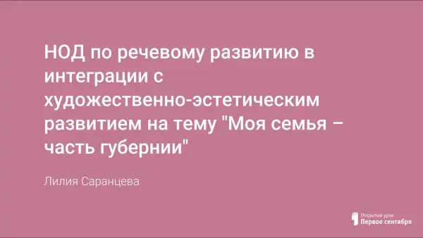 Конспект направлен на развитие патриотических чувств, чувства любви, гордости за свою губернию, малую родину, уточнение представлений детей о родном крае, развитие творческих способностей ребенка, формирование представлений о семье, воспитание желания заботиться о близких, развитие чувства гордости за свою семью, содействие адаптации ребенка к жизни в социуме.