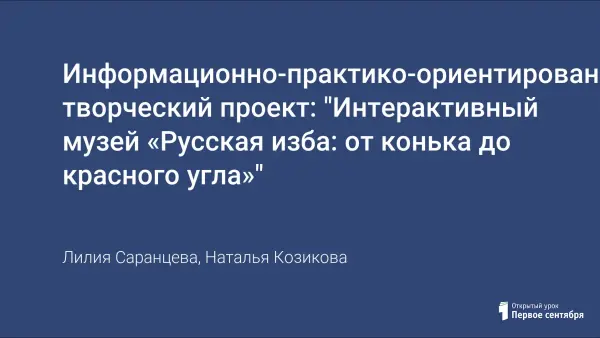 Информационно-практико-ориентированный, творческий проект: "Интерактивный музей «Русская изба: от конька до красного угла»"