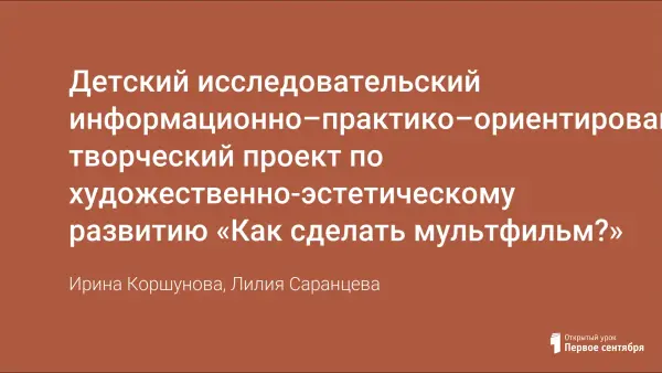 Детский исследовательский информационно–практико–ориентированный, творческий проект по художественно-эстетическому развитию «Как сделать мультфильм?»