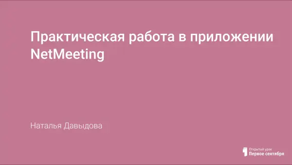 Практическая работа с приложением Windows NetMeeting, которая без доступа в Интернет позволяет познакомить учащихся со всеми видами общения в сети.