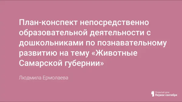 План-конспект непосредственно образовательной деятельности по познавательному развитию предназначен для детей младшего дошкольного возраста. В процессе НОД у детей формируются представления о животных, живущих в Самарской губернии.