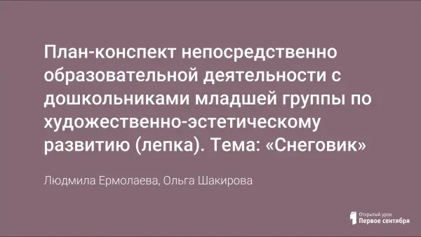 План-конспект непосредственно образовательной деятельности с дошкольниками младшей группы по художественно-эстетическому развитию (лепка). Тема: «Снеговик»