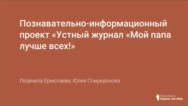 Познавательно-информационный проект «Устный журнал «Мой папа лучше всех!»