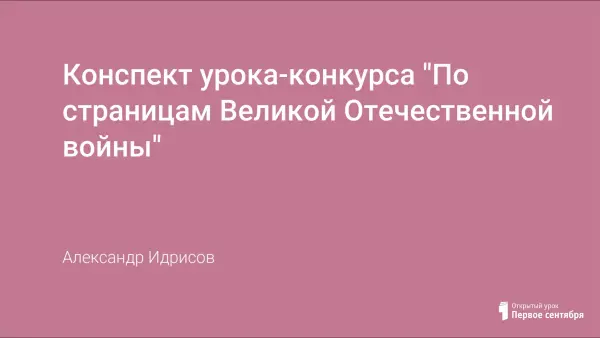 Урок, посвященный двум памятным датам 2005–2006 гг. Это 60-летие со дня Великой Победы советского народа в Великой Отечественной войне и 65-летие со дня начала Великой Отечественной войны. В целях увековечения памяти о войне, в целях воспитания среди учащихся патриотизма и гражданственности необходимо проводить в образовательных учреждениях мероприятия, связанные с этими датами, которые наполнены как героическими, так и трагическими страницами.